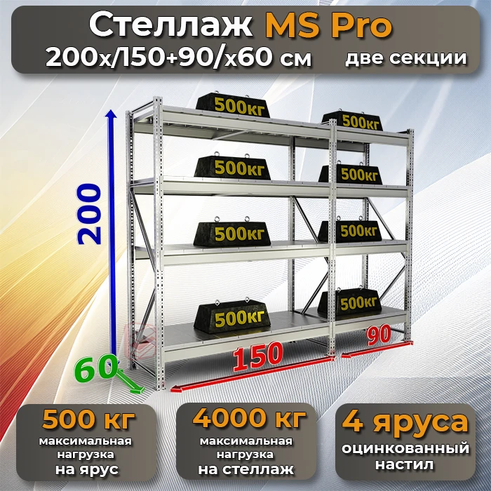 ✅ Высокая нагрузка: Каждая секция стеллажа выдерживает до 4000 кг на секцию и до 500 кг на ярус, что гарантирует безопасность и надежность хранения.