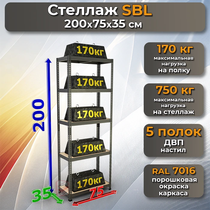 ✅ Прочная конструкция – выдерживает до 170 кг на полку, общая нагрузка до 750 кг.